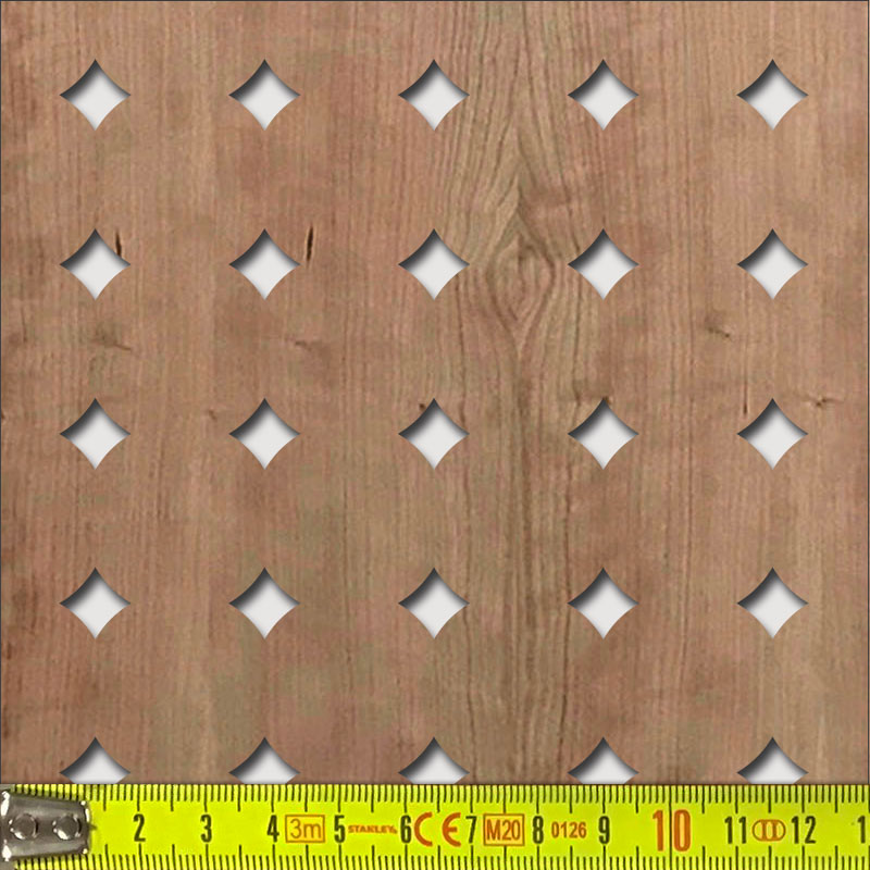 Perforált keményfarost lemez (HDF), mindkét oldalán felületkezelés nélküli valódi fafurnér.