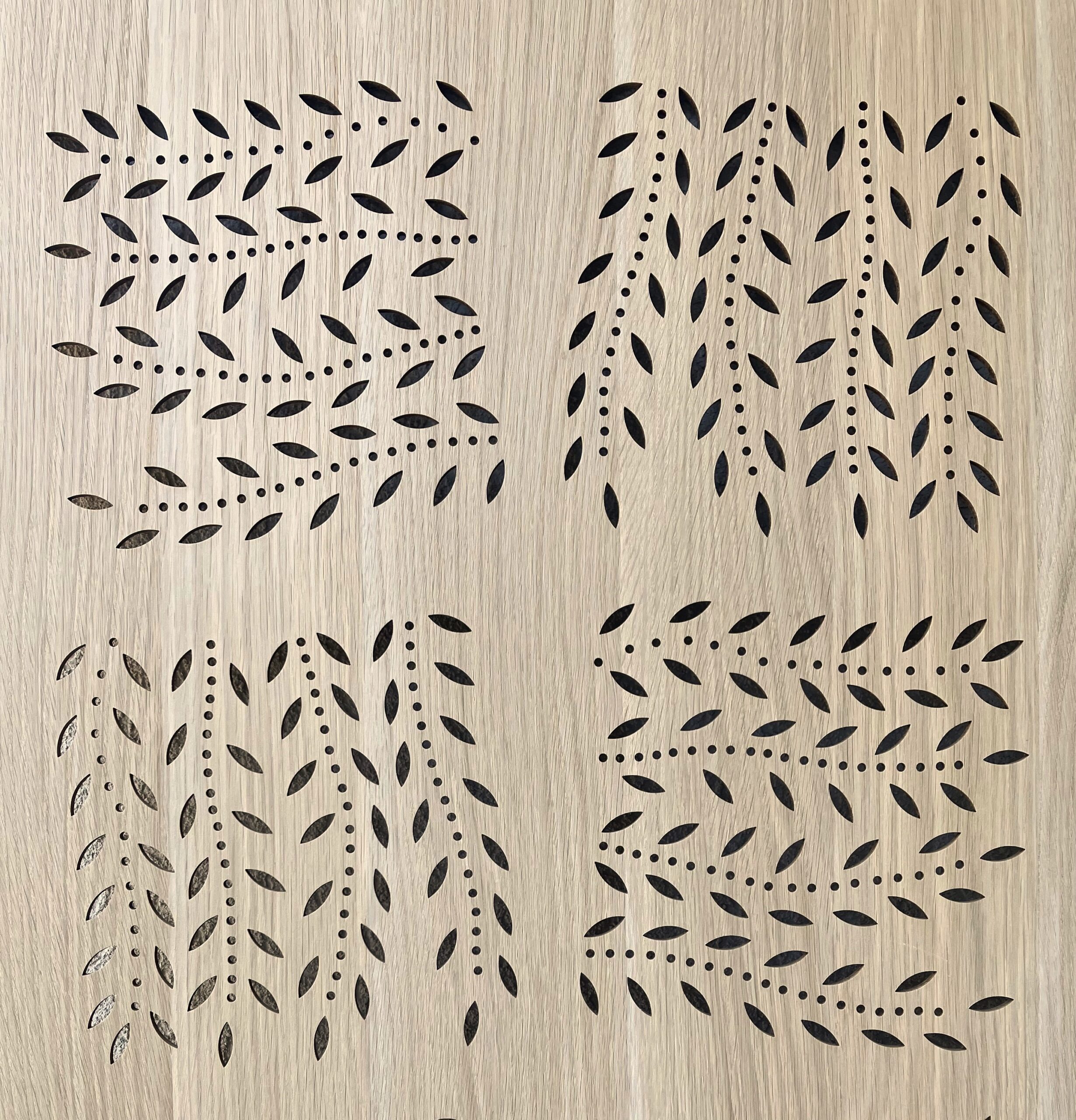 A perforált mezők kb. 25×25 cm méretűek.