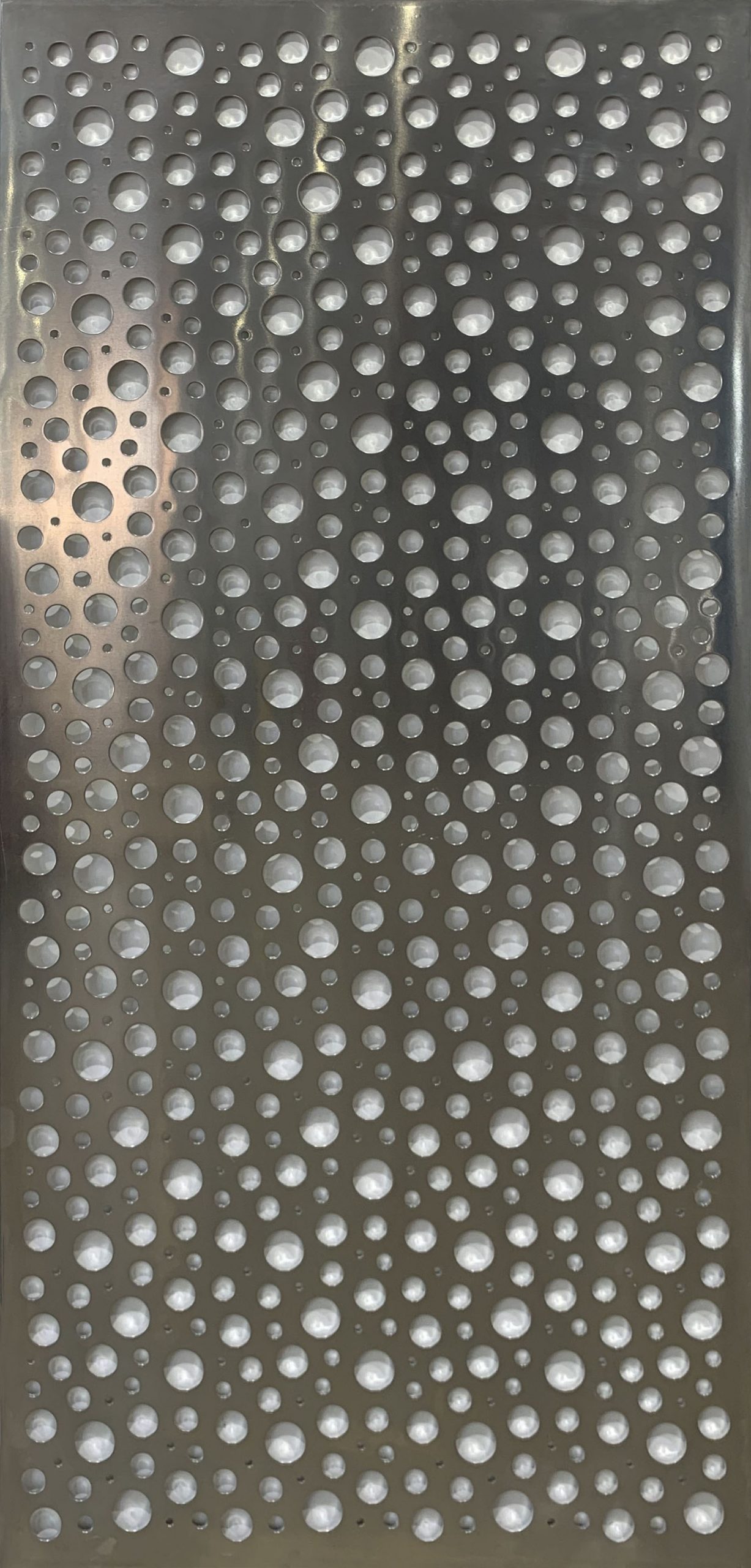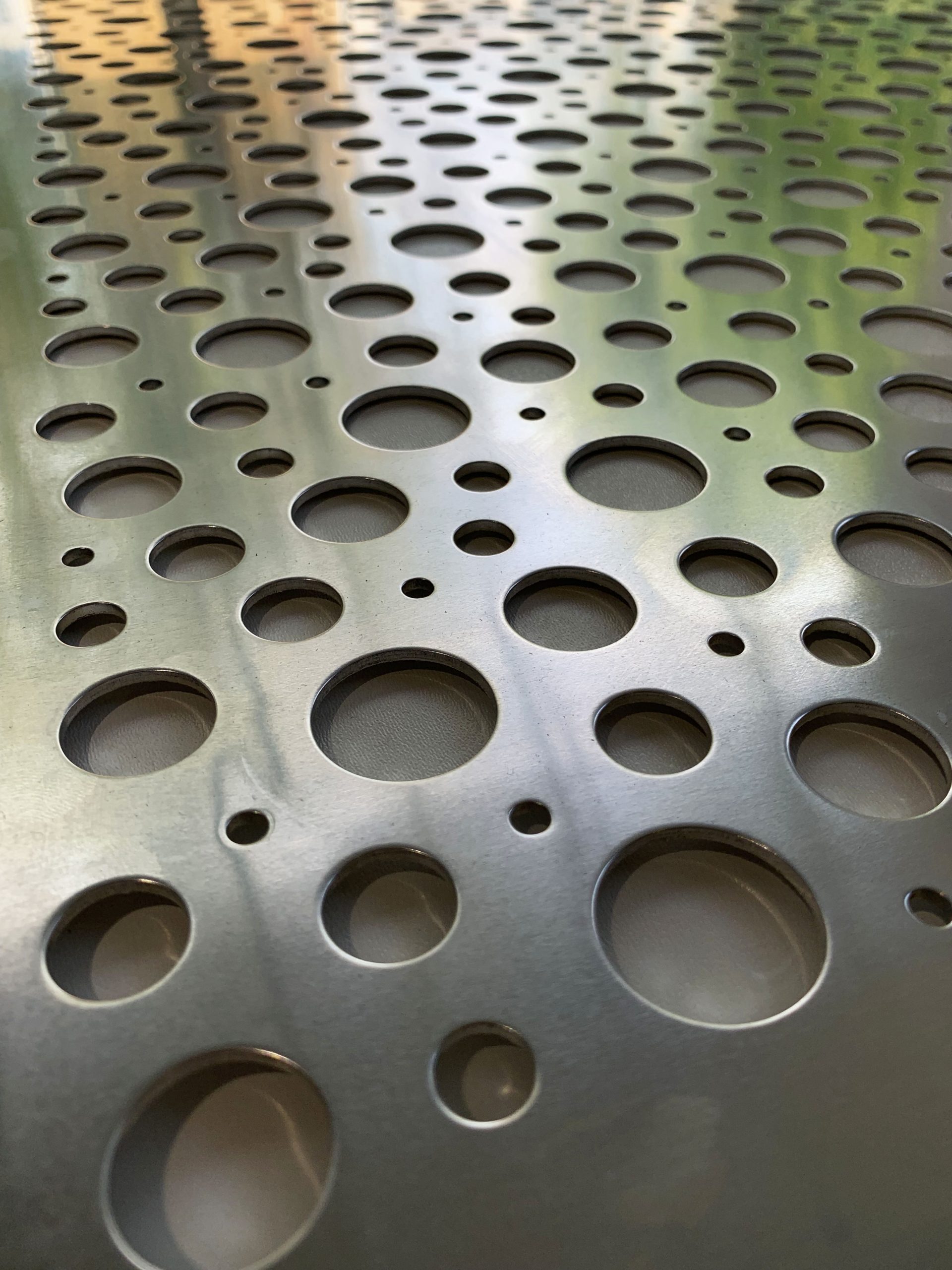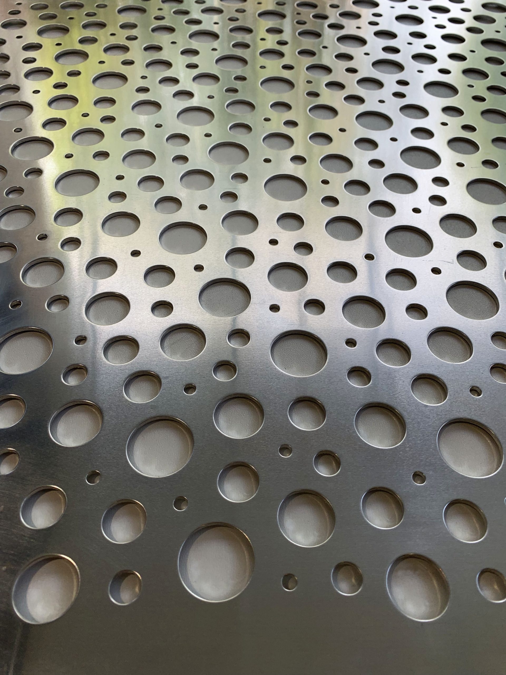 Néhány mintánkkal megrendelésre gyártunk 2 mm vastagságú, felületkezelés nélküli alumínium alapanyagú perforált lemezt is. A gyártás során kisebb esztétikai hibák keletkezhetnek a tábla felületén, melyek a felületkezelésre történő előkészítéssel eltüntethetők. Az áttört lemezek kültéren és beltérben egyaránt felhasználhatók például kerítésbetét, térelválasztó, árnyékoló, mellvéd-, vagy korlát elem céljára is.