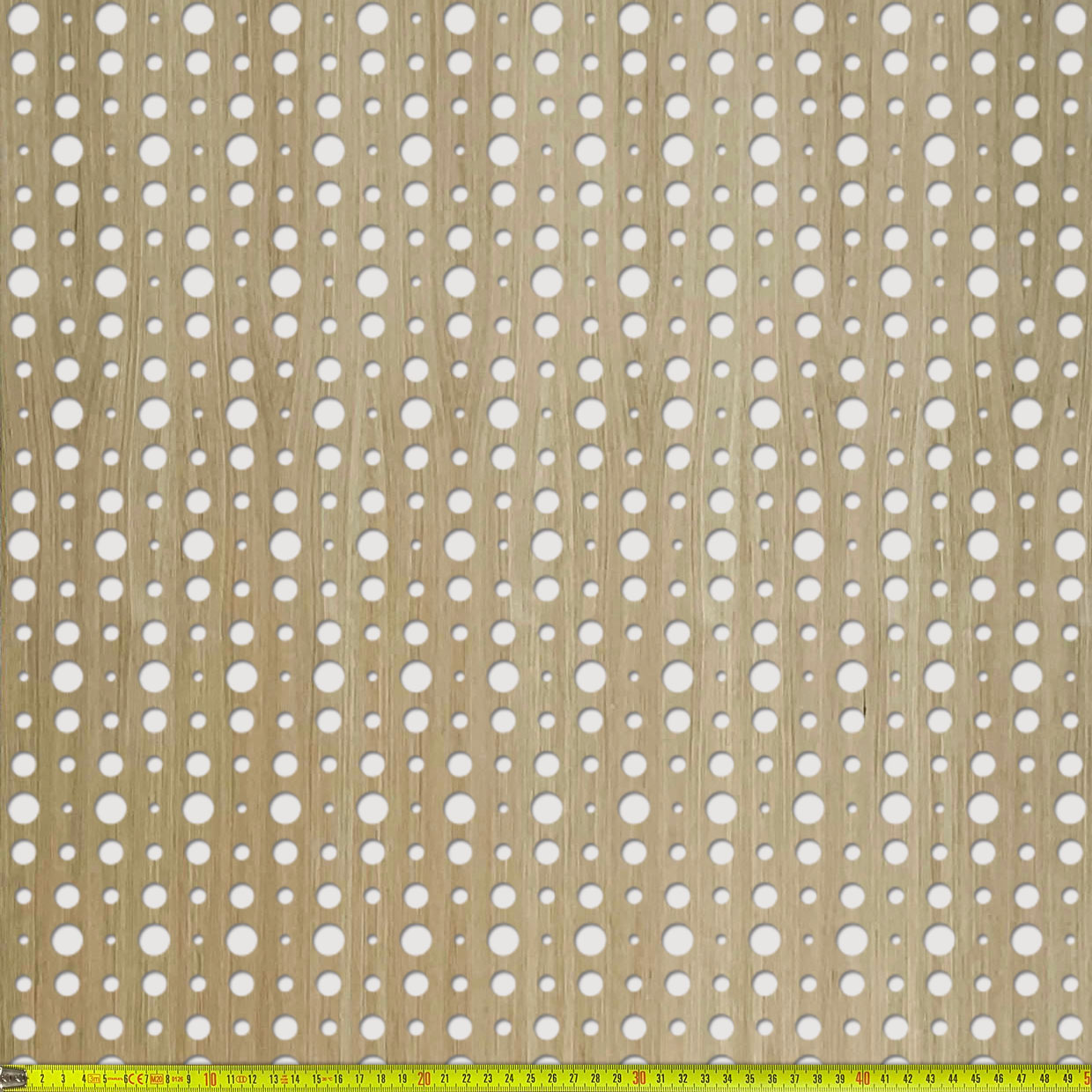 Perforált keményfarost lemez (HDF), mindkét oldalán felületkezelés nélküli valódi fafurnér.