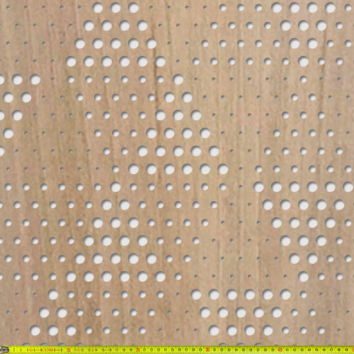 Perforált keményfarost lemez (HDF), mindkét oldalán felületkezelés nélküli valódi fafurnér.