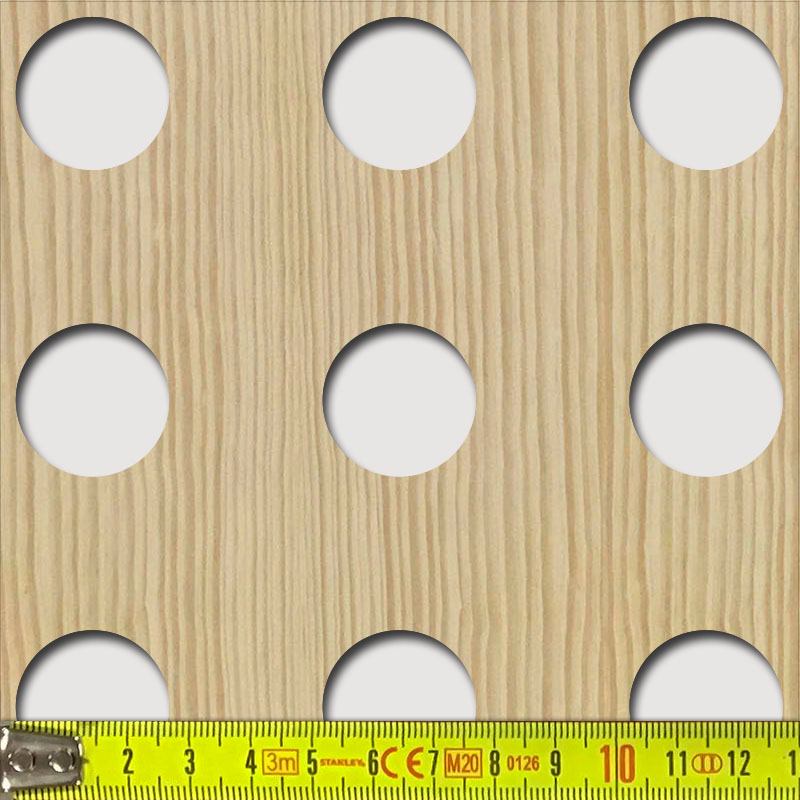 Perforált keményfarost lemez (HDF), mindkét oldalán felületkezelés nélküli valódi fafurnér.