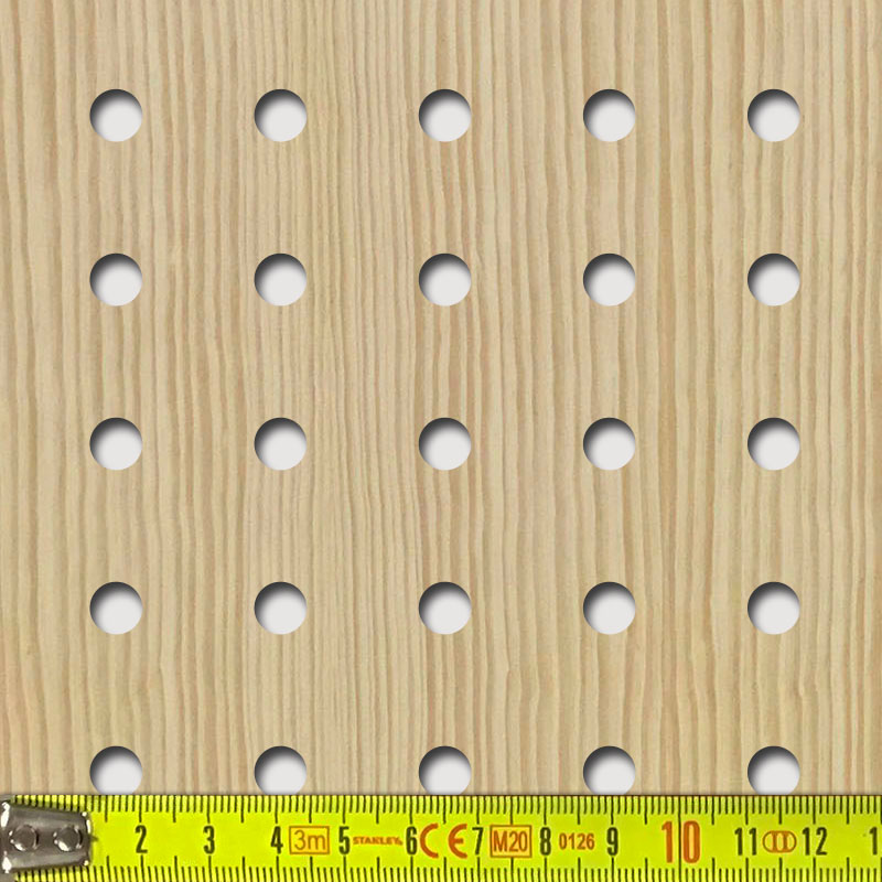 Perforált keményfarost lemez (HDF), mindkét oldalán felületkezelés nélküli valódi fafurnér.