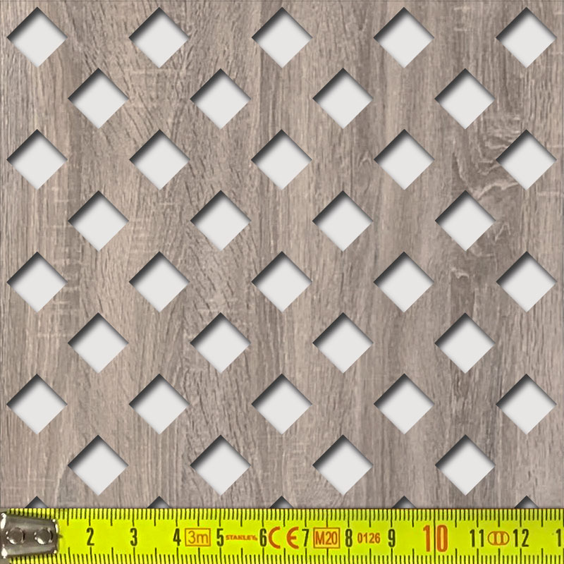 Frontoldalon színes (unicolor vagy fa utánzat) HDF anyagú perforált táblák. A lemez hátoldala és a lyukak belső éle világosbarna. Felhasználás: olyan belsőépítészeti elemként, melynek során csak a frontoldal látszik, például radiátor eltakarása. A színezett oldal miatt felületkezelésre nincs már szükség (de igény esetén mindkét oldal festhető).