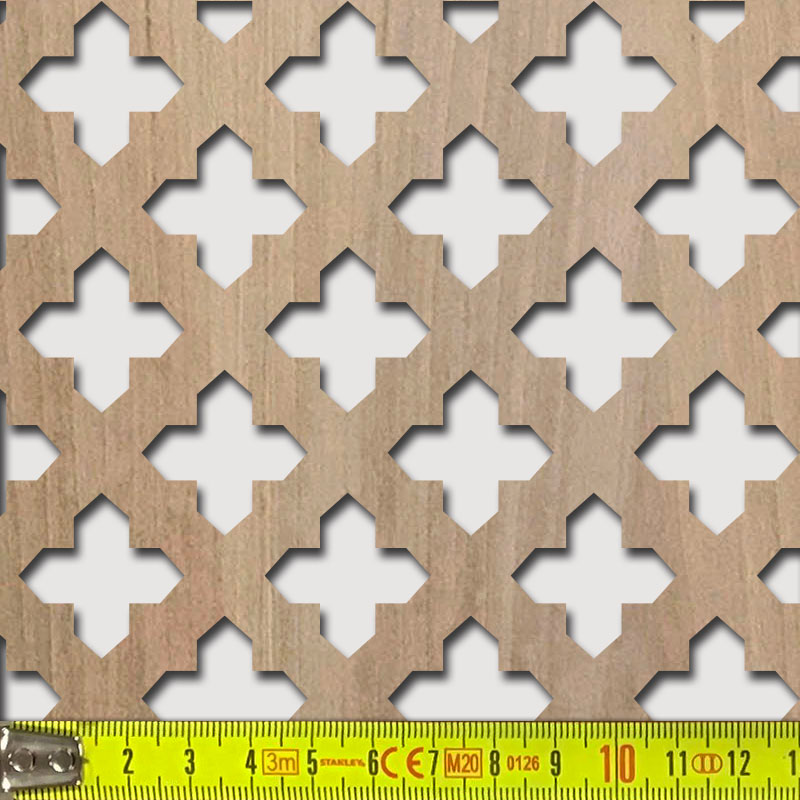 Perforált keményfarost lemez (HDF), mindkét oldalán felületkezelés nélküli valódi fafurnér.