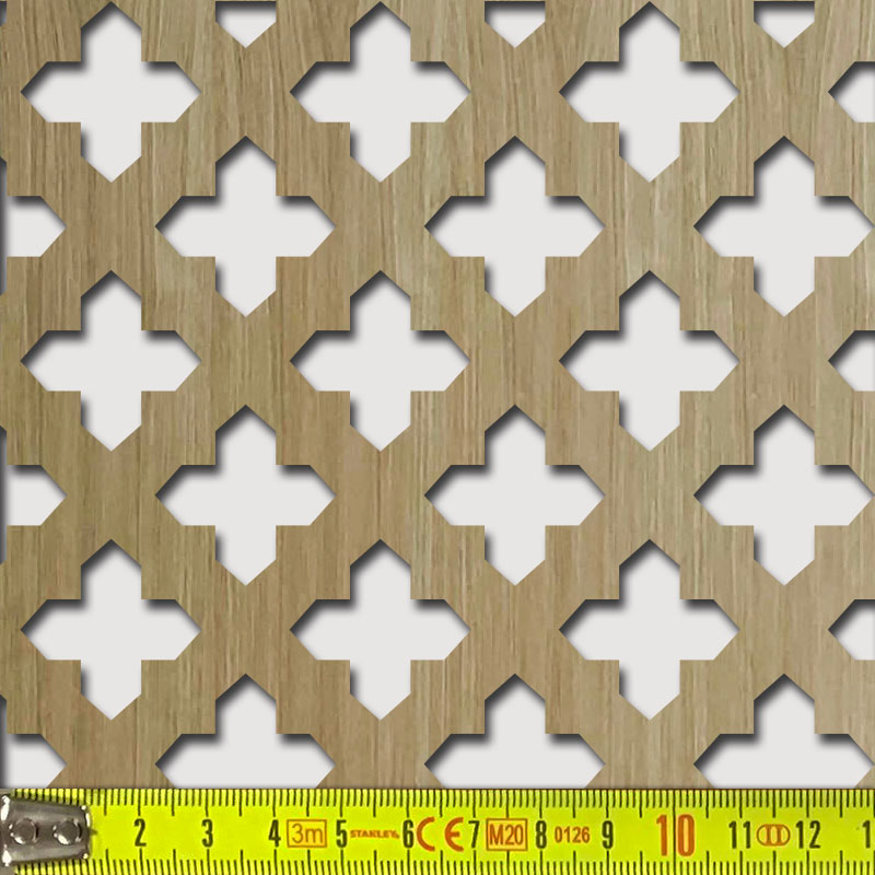 Perforált keményfarost lemez (HDF), mindkét oldalán felületkezelés nélküli valódi fafurnér.