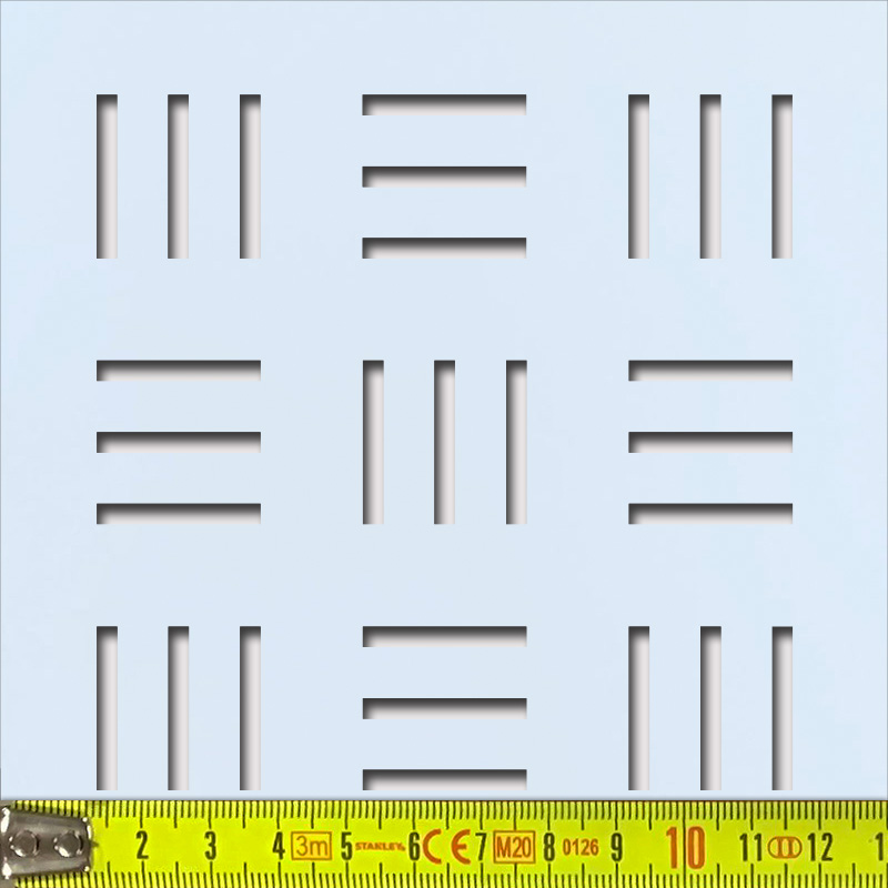 Frontoldalon színes (unicolor vagy fa utánzat) HDF anyagú perforált táblák. A lemez hátoldala és a lyukak belső éle világosbarna. Felhasználás: olyan belsőépítészeti elemként, melynek során csak a frontoldal látszik, például radiátor eltakarása. A színezett oldal miatt felületkezelésre nincs már szükség (de igény esetén mindkét oldal festhető).
