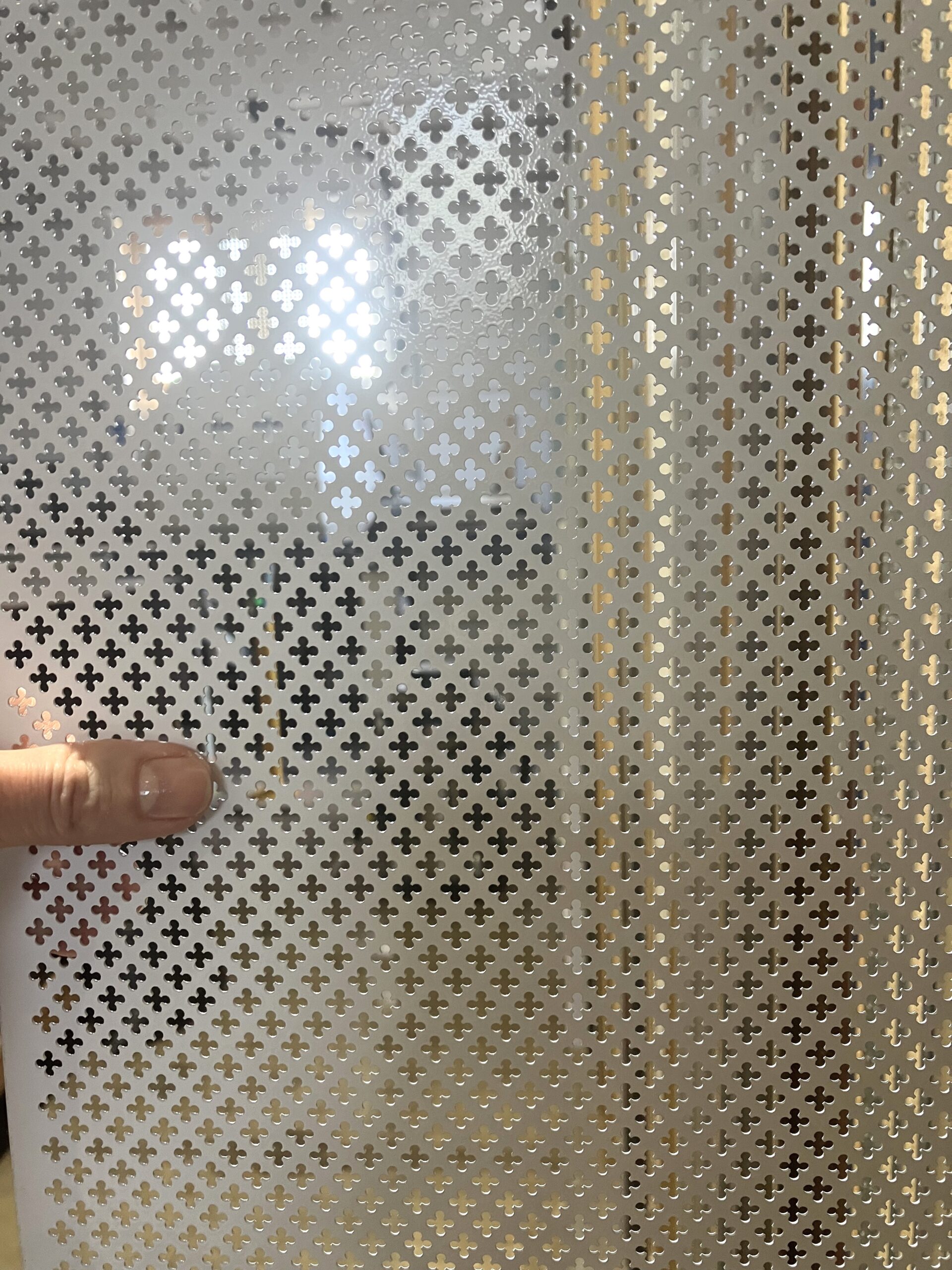 Mindkét oldalán porszórással festett perforált alumínium lemez. A/B
