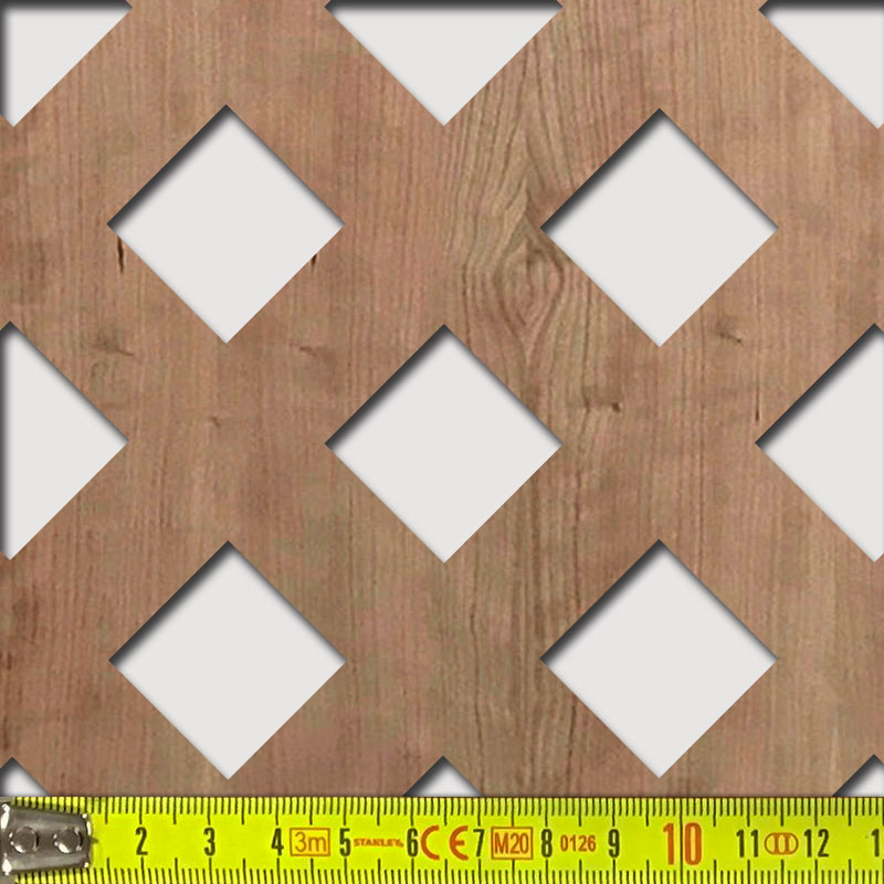 Perforált keményfarost lemez (HDF), mindkét oldalán felületkezelés nélküli valódi fafurnér.